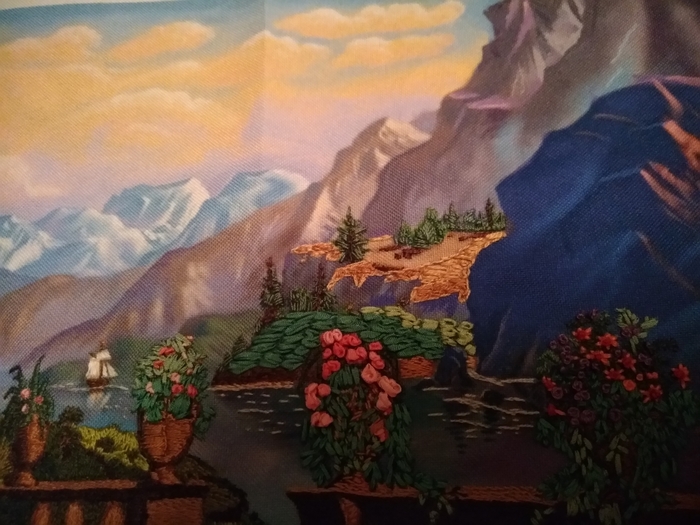 Как и обещала, публикую вышивку и её фрагменты. Разместила её под стекло. Это моя первая вышивка.